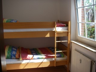 Unsere 50 m2 große komfortable allergenarme Ferienwohnung für 1-4 Personen mit freiem W-LAN befindet sich im Erdgeschoss des Hauses Uns Huus. Das Haus liegt in einer ruhigen, dennoch zentral- und strandnahen Nebenstraße. Vom Bahnhof sind es nur wenige Meter Fußweg. Uns Huus ist von einem Garten umgeben, in dem Schaukeln den Kindern hinter dem Haus zur Verfügung stehen.Die Ferienwohnung "Sonnenschein" ist durch ihre südliche Lage sehr hell und sonnendurchflutet. Das große Wohnzimmer mit dem gemütlichen Sofabereich ist durch eine Fensterfront zur ebenerdigen südlich gelegenen, nicht einsehbaren, überdachten und windgeschützten Holzterrasse verbunden. Bequeme Gartenmöbel, sowie die Gartennutzung, ermöglichen einen "Draußenaufenthalt" vom Frühstück bis in die Abendstunden. Eine gut sortierte Küchenzeile mit Essbereich lädt zum Kochen und Relaxen ein. Von den zwei Schlafzimmern ist eines mit einem Doppelbett und das andere mit einem Doppelstockbett ausgestattet. Das Badezimmer ist nach den neuesten Standards eingerichtet und hat beispielsweise eine leicht begehbare und geräumige Dusche.